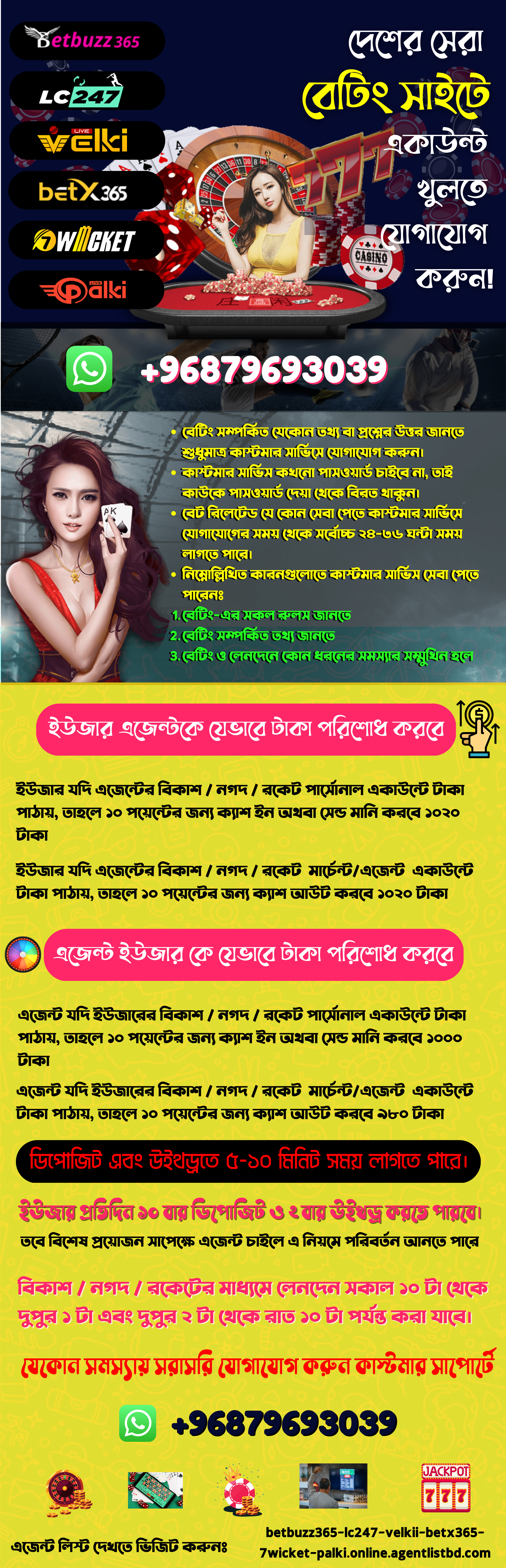 BetBuzz 365 ও Maja 365 ও 1Xbet ও 7 wicket ও Betx365 ও Bajiwala ও Masti247 ও MasterBDT ও BaziBDT– তে একাউন্ট করতে হলে আপনার এজেন্ট এর মাধ্যমে একাউন্ট খুলতে হবে। এজেন্ট এর মাধ্যমেই টাকা ডিপোজিট এবং উইথড্র করতে হবে। আপনি যে এজেন্ট এর কাছ থেকে একাউন্ট খুলবেন তার সাথেই সব সময় লেনদেন করতে হবে। ঠিক কোন এজেন্ট কে টাকা দিবেন এবং কিভাবে তার সাথে লেনদেন করবেন তা বুঝতে হলে আপনার নিম্নের তথ্য গুলো পড়া জরুরী।